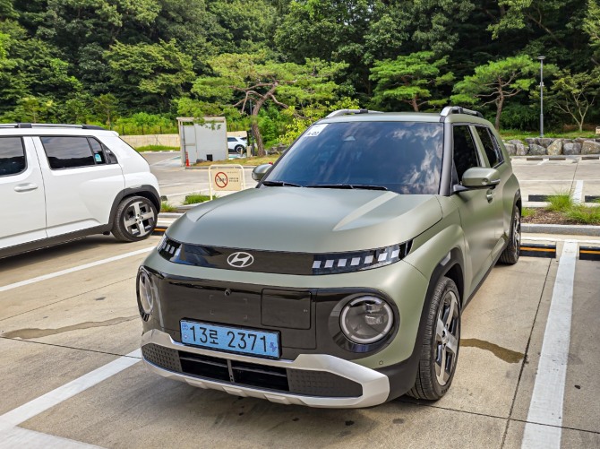 이미지 확대보기외관상으로 보면 휠베이스가 180mm 늘어나고 전체적으로 길이도 230mm 늘어나며 경형SUV의 개성 강한 앙증맞음에서 벗어나 소형 SUV의 면모를 갖추게 됐다. 캐스퍼보다 비율이 더 좋아졌다는 평가도 행사장 곳곳에서 들려왔다.