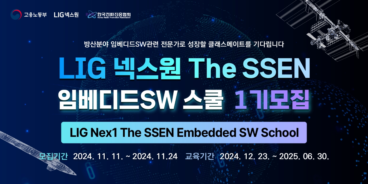 이번에 모집하는 ‘LIG넥스원 The SSEN 임베디드SW 스쿨 1기’는 30명을 선발하여, 2024년 12월 23일부터 2025년 6월 30일까지 한국전파진흥협회 가산 DX캠퍼스 1센터에서 교육을 진행한다.