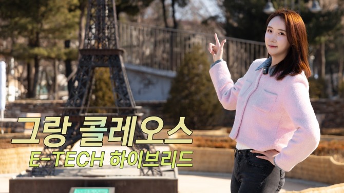이미지 확대보기르노 그랑 콜레오스 시승 후 프랑스 감성을 물씬 풍기는 배경으로 나연진 앵커가 포즈를 취하고 있다. 사진=이병주 글로벌모터즈 피디