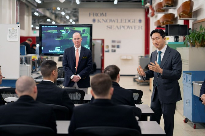 이날 생도들과의 환담에서 정 수석부회장은 "한국은 미국의 굳건한 동맹국이자 신뢰할 수 있는 파트너로서 조선·해양 분야 혁신의 원동력으로 함께 할 것"이라며 "한미동맹은 희생으로 맺어져 수십 년 동안 강화되어 왔고 단순한 군사적 파트너십을 넘어 글로벌 안보의 한 축이 됐다"고 말했다.