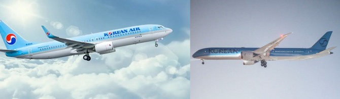 이미지 확대보기10일 업계에 따르면 항공 관련 커뮤니티에서는 대한항공의 새로운 비행기 도장이 포착돼 화제다. 이전과는 다른 색깔과 새로운 로고가 특징이다. 1984년부터 이어져 온 빨강과 파랑의 태극 문양도 바뀌었다.