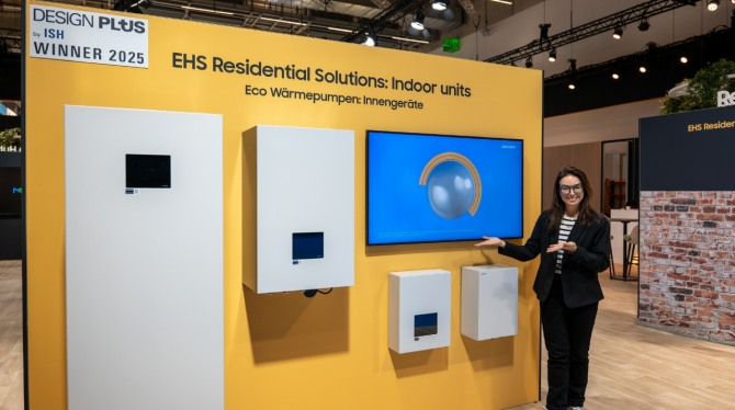 '슬림 핏 클라이밋허브'는 200L 전용 물탱크가 탑재된 가정용 히트펌프 EHS 제품이다. 7형 터치스크린 기반 'AI 홈'을 탑재해 편의성을 높였고 600mm 깊이의 슬림핏 디자인으로 사이즈로 집 안 빌트인 가구와 잘 어울린다. 'EHS 모노 R290'도 고효율 냉난방 시스템인 히트펌프 EHS 제품으로 자연냉매인 R290을 적용했다. 강력한 성능으로 난방을 위한 최대 75도의 고온수를 공급할 수 있다.