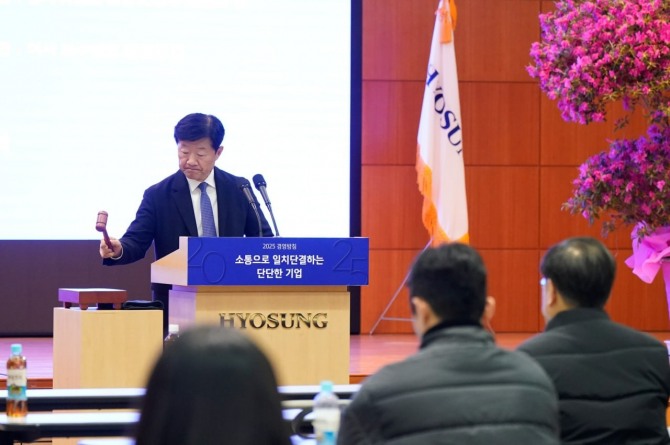 이미지 확대보기효성중공업은 20일 서울 마포구 효성빌딩에서 제7기 정기주주총회를 개최하고 조 회장을 사내이사로 선임했다. 이외 안건으로 올라온 재무제표 승인, 감사위원회 위원 선임, 이사 보수 한도 승인 등도 모두 통과됐다.
