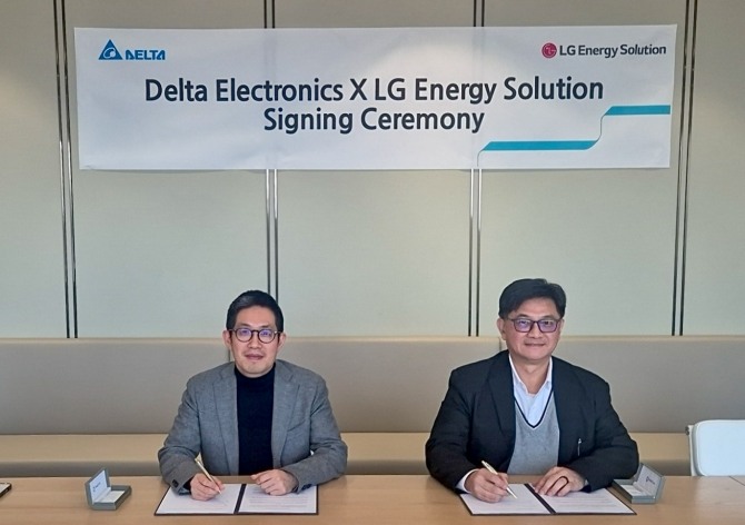 이미지 확대보기LG에너지솔루션은 25일(현지 시각) 델타 일렉트로닉스와 ‘전략적 파트너십’을 체결했다고 26일 밝혔다. 이번 협력을 통해 LG에너지솔루션은 2025년부터 2030년까지 5년간 총 4기가와트시(GWh) 규모의 주택용 ESS 배터리를 공급할 예정이다. 이는 약 40만 가구(4인 기준) 이상이 하루 동안 사용할 수 있는 전력량이다. 또 향후 주택용뿐만 아니라 전력망, 상업용 ESS 시장에서도 협력을 모색하기로 했다.