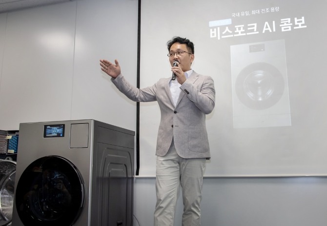 이미지 확대보기이날 서울 중구 삼성전자 기자실에서 열린 ‘비스포크 AI 콤보’ 미디어 브리핑에서 성 상무는 비스포크 AI콤보에 대한 자신감을 내비쳤다. 그는 "소비자들의 목소리를 반영한 '비스포크 AI 콤보'가 출시 1년 만에 국내 시장의 판도를 바꿔놨다"면서 "올해는 혁신 기술을 바탕으로 국내 최대 18kg 건조 용량, 세탁∙건조 성능과 효율 등을 두루 갖춘 한층 진화된 신제품을 선보였다"고 밝혔다.