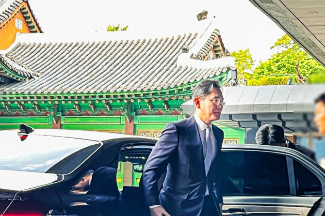 이재용 삼성전자 회장이 30일 오후 서울 중구 신라호텔에서 열린 2025 삼성호암상 시상식 참석을 위해 호텔 행사장으로 이동하고 있다. 사진=장용석 기자