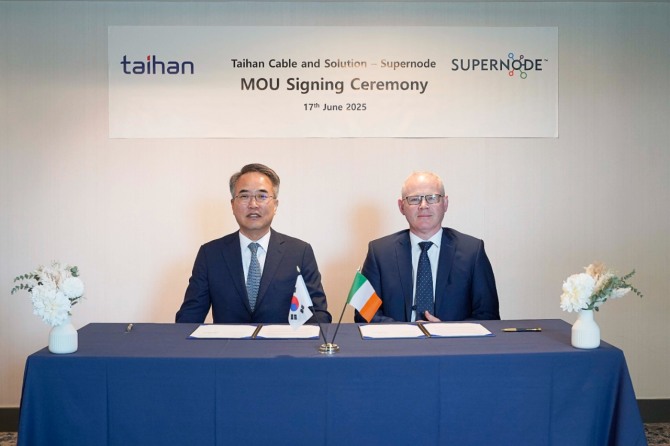 이미지 확대보기대한전선은 지난 17일(현지 시각) 영국 런던에서 아일랜드 초전도 케이블 기업 슈퍼노드와 ‘차세대 초전도 케이블 개발을 위한 업무협약(MOU)'을 체결했다고 18일 밝혔다.