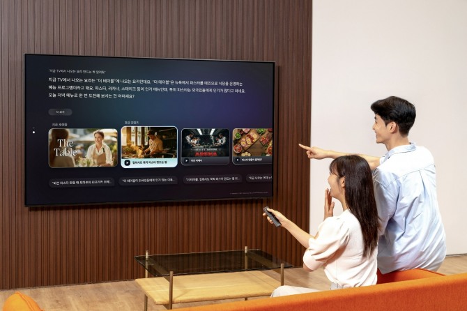 이미지 확대보기이번 업데이트로 사용자는 TV와 대화하듯이 쉽게 다양한 정보를 얻을 수 있게 됐다. 예를 들어 시청중인 프로그램에서 등장 인물 정보를 알고 싶을 때 리모콘의 'AI 버튼'을 누르면 AI가 관련 내용을 알려준다. 추가적인 질문을 해도 상황에 맞는 정보를 얻을 수도 있다.