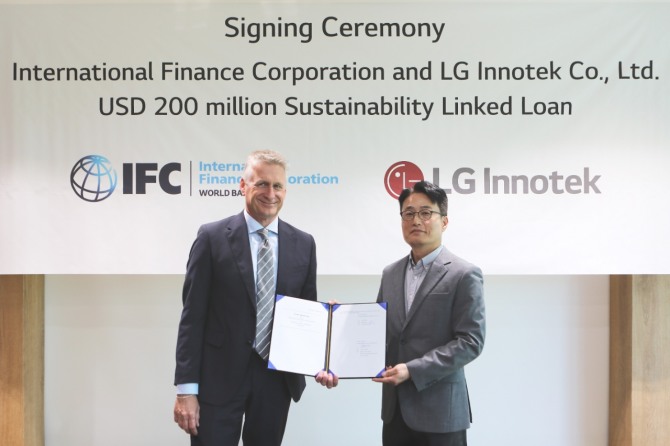 이미지 확대보기LG이노텍은 베트남 하이퐁 생산법인 증설 투자 명목으로 지난해 IFC의 지속가능성연계대출(SLL)을 신청했다. 세계은행그룹 산하 기관인 IFC는 민간기업 투자를 지원하는 국제금융기구다. LG이노텍은 한국 기업으로는 최초로 총 2억 달러(약 2790억 원) 규모의 자금을 차입할 수 있게 됐다. 대출 만기는 8년이다.