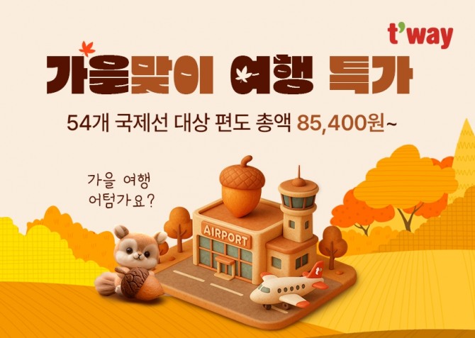 티웨이항공 관계자는 “가을을 맞아 여행을 준비하시는 티웨이항공 고객을 위해 이번 프로모션을 준비하였다”며 "앞으로도 안전 운항을 최우선으로 하여 다양한 프로모션과 이벤트 진행에 최선을 다하겠다"고 말했다.
