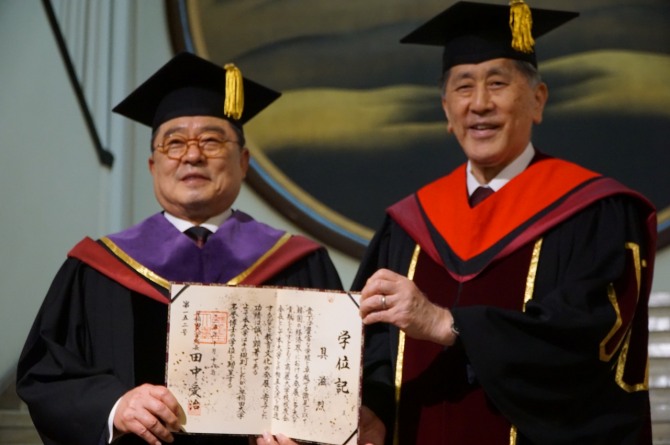 18일, 와세다대에서 다나카 아이지 총장 등 명예 박사 학위 수여식 개최