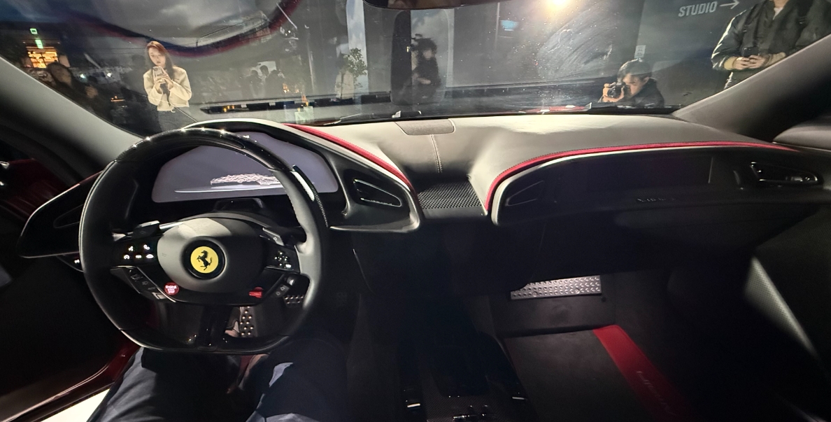 실내는 운전자와 동승자를 분리하는 '듀얼 콕핏' 콘셉트를 채택했다. 특히, 페라리는 고객 피드백을 반영해 신형 스티어링 휠에 즉각적인 피드백을 제공하는 물리 버튼을 다시 적용했으며, 시동 버튼 역시 물리 버튼으로 복귀시켰다. 이와 함께 대시보드 중앙에 수평형 터치스크린을 배치해 편의성을 확보했다.