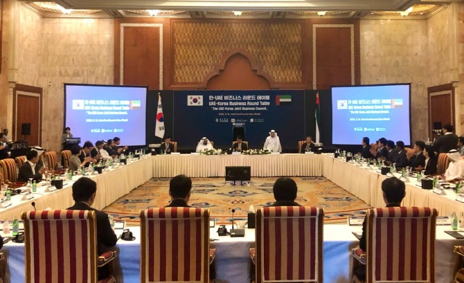 2023년 UAE 아부다비에서 개최된 한-UAE 비즈니스 라운드테이블 모습. 사진=한국무역협회