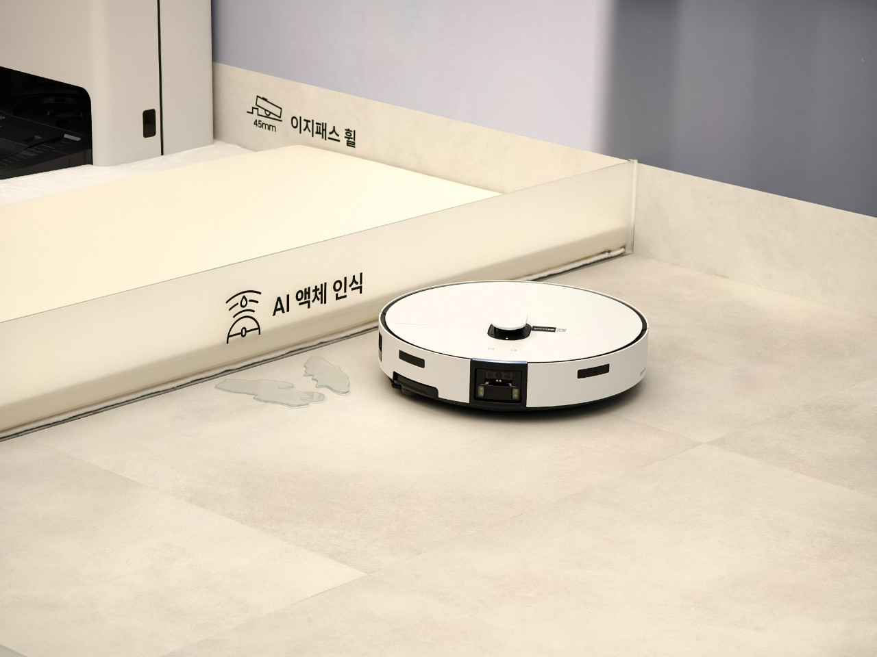 이번 신제품은 최대 45mm의 단일 문턱을 넘을 수 있는 '이지패스 휠'이 적용돼 매트나 문지방이 있어도 자유롭게 주행하며 청소한다.