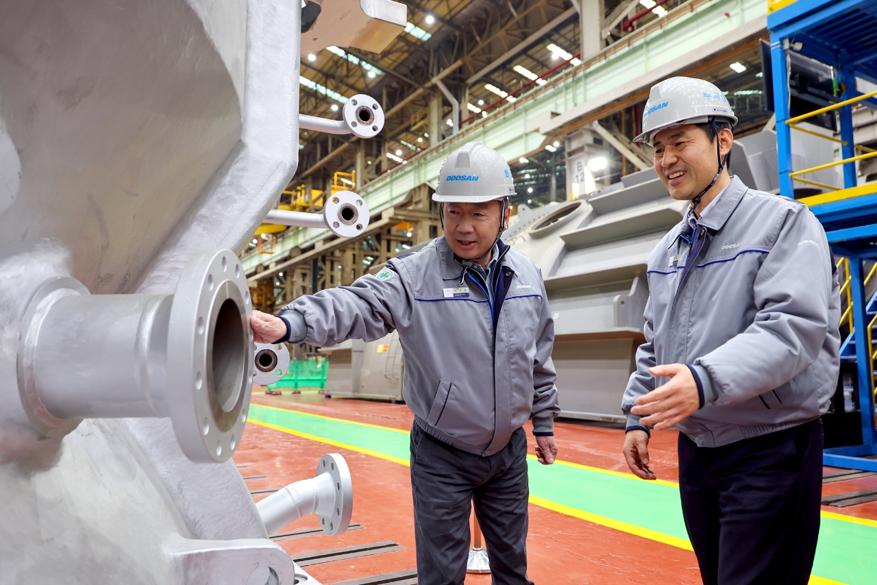 12일 두산그룹에 따르면 박 회장은 11일 경남 창원 두산에너빌리티 사업장을 방문해 에너지 사업 현황을 점검했다. 특히 최근 수주 소식이 잇따르며 한층 분주해진 발전용 가스터빈 공장과 소형모듈원전(SMR) 주기기 제작라인을 집중적으로 둘러보면서 현장 상황을 세밀하게 살폈다.