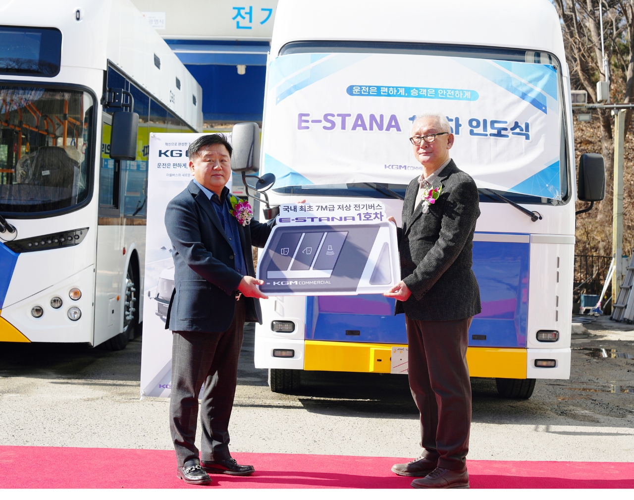 이미지 확대보기KGMC가 국내 최초 7M급 저상 전기버스 '이-스타나' 1호차를 인도하며 교통약자 중심의 생활형 전동화 시장 확대에 속도를 올렸다.