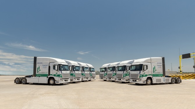 현대차는 20일 우루과이 친환경 물류 구축 사업 '카이로스 프로젝트'에 엑시언트 수소전기트럭 8대를 공급했다고 밝혔다. 해당 프로젝트는 목재 운송 과정의 탄소 배출 저감을 목표로 한 민간 협력 사업이다.