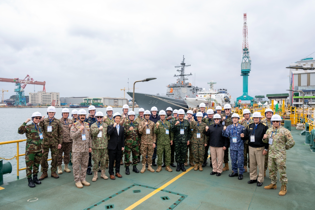 무관단은 건조 중인 8200t(톤)급 첨단 이지스구축함인 ‘대호김종서함’을 비롯해 △3000t급 해경경비함 △2400t급 필리핀 원해경비함 △창정비 중인 잠수함 등을 직접 확인하고 설계부터 건조, 유지·보수(MRO)는 물론, 첨단 기술을 아우르는 체계 통합 역량에 높은 관심을 보였다.