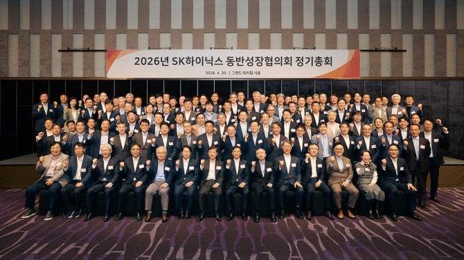 이미지 확대보기SK하이닉스는 20일 서울 광진구 그랜드 워커힐에서 ‘2026년 동반성장협의회 정기총회’를 개최했다. 동반성장협의회(협의회)는 SK하이닉스가 협력사와 반도체 공급망 경쟁력을 강화해 나가고 협력 관계를 굳건히 다져 나가기 위해 2001년 결성한 협의체다. 매년 정기총회를 통해 사업 현황과 시장 전망을 공유하는 등 협력을 강화하고 있다.