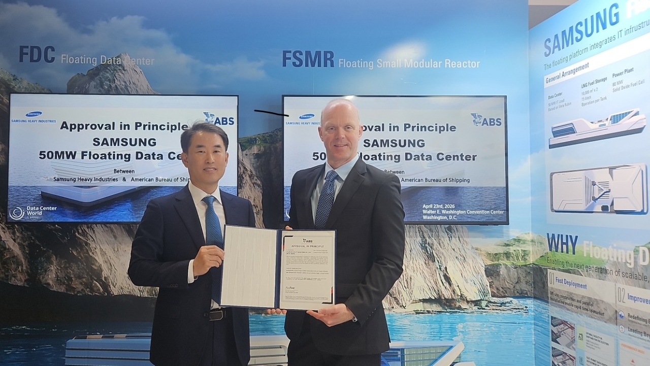 이미지 확대보기삼성중공업은 24일 미국 워싱턴 D.C.에서 지난 20일(현지시각)부터 23일까지 열린 ‘데이터센터월드(DCW) 2026’에 참가해 자체 개발한 FDC의 글로벌 시장 진입을 위한 기반을 마련했다고 밝혔다. 행사 기간 미국선급협회(ABS)와 영국 선급(LR)으로부터 50메가와트(MW)급 FDC 개념설계 인증(AiP)을 획득했다.