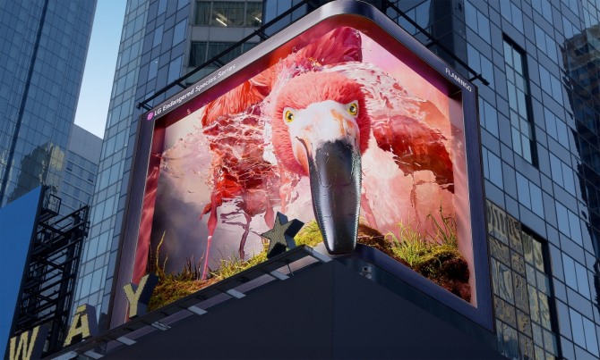 이미지 확대보기LG전자는 최근 미국 뉴욕 타임스스퀘어 전광판에 ‘LG와 함께하는 멸종위기종 보호 캠페인’의 9번째 영상 ‘플라밍고’ 편을 공개했다고 24일 밝혔다. LG전자는 2024년부터 타임스스퀘어 전광판에 멸종위기에 처한 동물을 주제로 한 영상을 상영하고 있다.