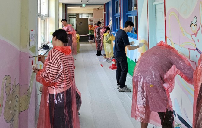 이번 봉사활동은 그룹 본사와 계열사 대표 사업장이 있는 경기도 성남시의 성남북초등학교와 국군대전병원에서 동시에 진행됐다. 이번 활동까지 포함해 지난 4년간 약 1000명의 임직원과 가족이 총 15곳의 수도권·대전 등 지역 소재 학교와 사회복지기관에 벽화를 선물했다.
