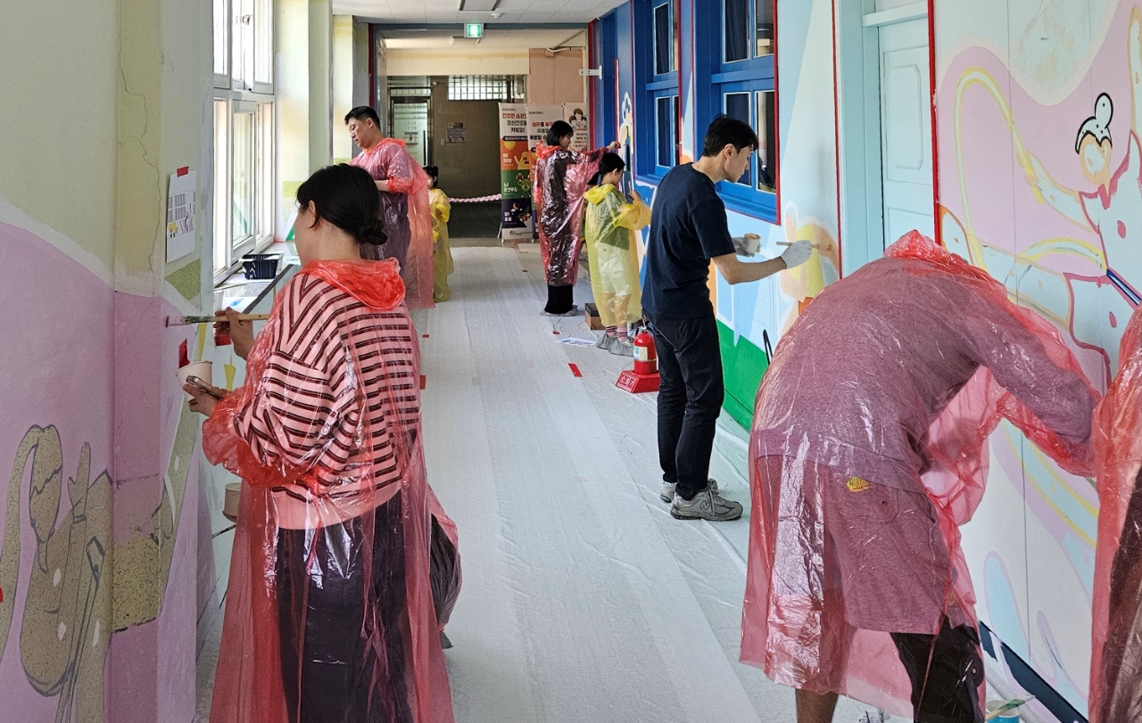 성남북초·국군대전병원서 동시 진행…4년간 15곳에 벽화 선물