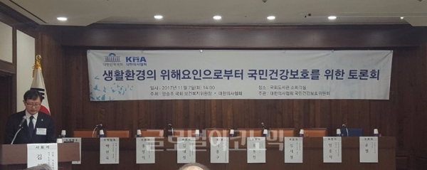 이미지 확대보기7일 오후 2시. 국회 도서관 소회의실에서는 ‘생활환경의 위해요인으로부터 국민건강 보호를 위한 토론회’가 열렸다. 행사장 앞쪽에는 플래카드가 걸렸고 ‘주최: 양승조 국회 보건복지위원장‧대한의사협회’라는 글씨가 또렷하게 박혀 있었다.