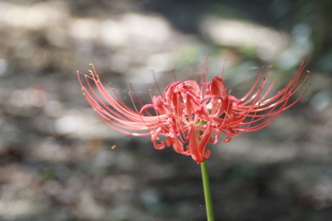 이미지 확대보기꽃무릇하면 영광 불갑사나 용천사, 선운사 꽃무릇을 떠올리게 된다. 마치 붉은 페르시안 양탄자를 펼쳐놓은 듯 무리지어 피어 있는 모습은 황홀하기 그지없다. 하지만 때로는 이처럼 홀로 피어 있는 모습은 애잔함으로 다가온다. 서둘러 카메라를 꺼내어 그 고운 모습을 담기 위해 부지런히 셔터를 눌렀다.