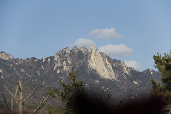 안내소를 지나자 길가에 빨간 열매를 매단 채 노란 꽃망울을 부풀린 산수유가 눈길을 잡아 끈다. 나무 사이로 보이는 우뚝 솟은 봉우리를 보며 등산로를 따라 오르다 보니 맑은 물소리와 함께 개구리 소리가 들려온다. 소리 나는 쪽으로 고개를 돌리니 개울가 물웅덩이에 개구리 알이 보인다. 아직 경칩 이전인데 이곳 개구리는 부지런도 하다. ‘쌍줄기약수터’를 지나 단풍나무 몇 그루 서 있는 곳에 이르면 이병주 소설가의 북한산 찬가비가 있고, 서원과 담을 경계로 ‘풀’이라는 시로 유명한 김수영 시인의 시비가 서 있다.