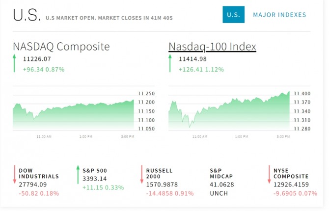 미국 뉴욕증시 나스닥 S&P 다우지수 실시간시세