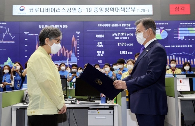 이번 임명장 수여식에 신임 기관장의 가족이 참석하는 것과 달리, 정 신임 청장은 동료 직원과 함께했다고 한다. 문 대통령은 임명장 수여식 후 꽃다발과 ‘건강한 국민, 안전한 사회’라는 문구가 새겨진 축하패도 건네고 있었다.