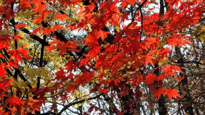 노란 은행잎이 수북이 쌓인 가로수 길을 지나 단풍이 절정을 이룬 우이동 계곡을 찾았다. 딱히 산행을 할 계획은 없었다. 다만 단풍이 절정을 지나기 전에 그 풍경 속에 나를 끼워 넣고 싶었다. 우이령을 오르는 길목엔 단풍나무 천지여서 온통 핏빛이다. 햇빛을 받은 단풍잎들이 뿜어내는 선홍의 색감이 눈을 사로잡는다. 가을 산을 가장 곱게 수놓는 단풍나무는 세계적으로 약 110여 종에 이를 만큼 매우 다양하다. 우리나라에도 15종의 단풍나무가 있는데 대표적인 게 신나무, 고로쇠나무, 시닥나무, 단풍나무, 홍단풍, 당단풍, 복자기, 중국단풍, 섬단풍 등이다. 그 중에도 가을 산을 아름답게 수놓는 단풍의 주역은 진짜 단풍나무와 당단풍이다. 진짜 단풍나무는 잎이 5~7개로 깊게 갈라져 있고 당단풍은 잎이 좀 더 크고 가장자리가 덜 깊게 갈라지며 그 수도 9~11개로 더 많다. 애기단풍은 잎의 크기가 작게는 어른 엄지 손톱만한 것부터 크게는 아이 손바닥만 한 것까지 작고 귀여워 붙여진 이름으로 단풍나무의 종류가 아닌 별칭이다.