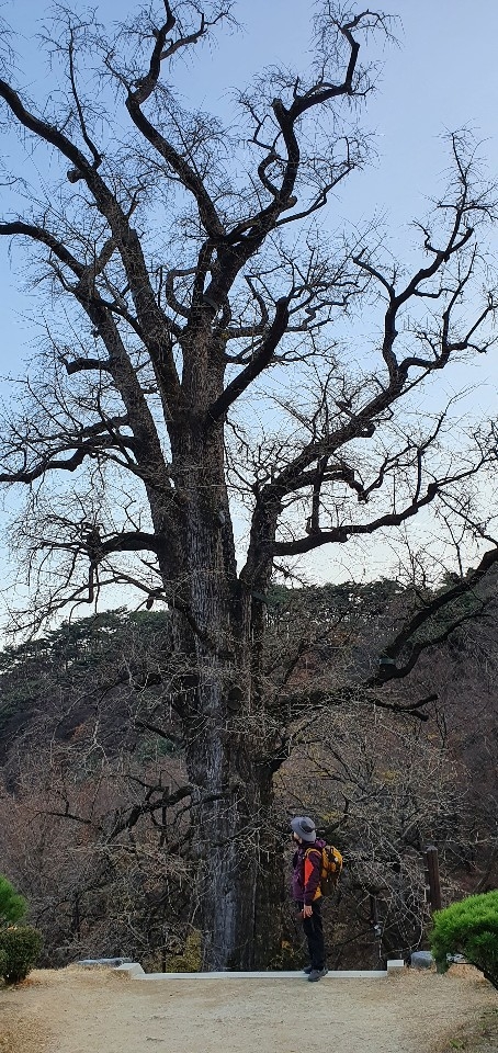이미지 확대보기높이 42m, 둘레 14m의 용문사 은행나무는 수령이 1100년을 훌쩍 넘어선다. 우리나라에서는 1500년 된 삼척 늑구리 은행나무 다음으로 오래 산 은행나무다. 열매가 열리는 암나무로는 동남아에서 최고의 수령을 자랑한다고 한다. 그 긴 세월 동안 꿋꿋이 자리를 지키며 1100번 넘게 새해를 맞이했을 은행나무 앞에 서니 겨우 서너 시간 걸어왔다고 힘들다고 엄살을 피울 엄두가 나지 않는다. 용문역에 내려 트레킹을 시작하면서 황금빛으로 물든 은행나무를 만날 수 있기를 은근히 바랐으나 이미 잎은 남김없이 지고 몇 개의 은행알만 달려 있을 뿐이었다. 그런데도 용문사 은행나무는 100년 남짓 사는 인간이 헤아릴 수 없는 위엄과 푸른 생명의 기운을 품고 있어 나목이라도 위풍당당하기만 하다. 절에 부처가 아닌 나무를 보러 간다고 해도 조금도 이상하지 않은 이유이기도 하다.