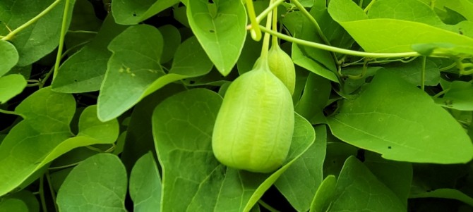 꼬리명주나비 애벌레들에게 잎을 갉아 먹힌 쥐방울덩굴 상부는 줄기만 앙상하게 남아 있는데도 덩굴 속엔 어느새 작은 초록풍선 같은 쥐방울 열매가 달려 있다. 아낌없이 자신의 잎을 내어주면서도 자신의 소명을 묵묵히 수행하고 있는 쥐방울덩굴이 새롭게 보였다. 그에 비하면 나비로의 비상을 위해 아귀아귀 잎을 갉아 먹는 애벌레들이 너무 염치없게 느껴졌다. 그런 생각이 들었던 것은 작은 애벌레에게 염치를 기대한다기보다는 자연을 통해 나를 돌아보고픈 마음이 내재해 있었던 것인지도 모르겠다.