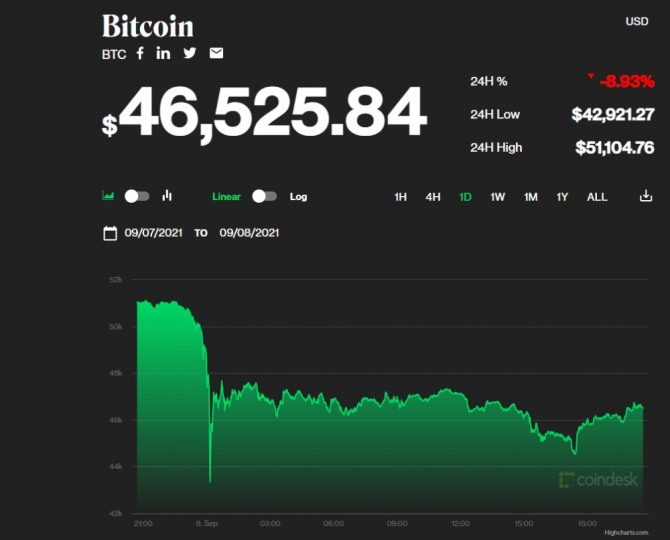 비트코인과 이더리움이 급락세를 타고있다. 1비트코인은 한때 10% 이상 하락했다. 비트코인 등락 폭이 10%를 넘은 것은 올 7월 26일(+12.07%) 이후 처음이다. 가상화폐는 주식시장과 달리 거래소 단위로 거래가 이뤄지기 때문에 같은 종류의 가상화폐라도 거래소마다 가격이 다소 다르다. 엘살바도르가 가상화폐 비트코인을 법정통화로 도입한 첫날을 하루 앞두고 비트코인 가격이 급등했다가 다음날 곧바로 급등 폭을 반납하는 모습이다.