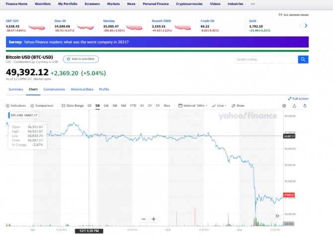 비트코인 가격은 한때 4만2천달러 선이 붕괴했다. 이더리움도 10% 이상 급락하는 등 가상화폐 전체가 주저앉았다. 뉴욕증시의 가상화폐 시장 일부 분석가들은 비트코인이 4만 달러 지지선을 지켜내지 못할 경우 지난 7월 최저치인 3만 달러 수준까지 떨어질 수 있다고 내다봤다. 가상화폐 트레이더들의 레버리지 거래 때문에 계단식 매도 주문과 청산이 발생한다는 점을 감안할 4만∼4만2천 달러 지지가 이뤄지지 않으면 3만∼3만5천 달러로 다시 내려갈 수 있다는 것이다.