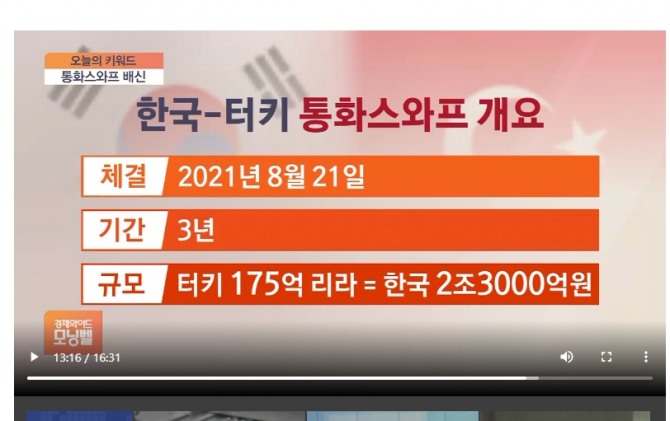 문제는 우리나라가 터키와 거액의 통화스와프 협정을 맺어 놓고 있다는 점이다. 한국과 터키는 2012년 8월 터키 돈 175억 리라와 우리나라 원화 2조3000억 원을 3년의 기한 내에서 마음대로 바꿔 쓸 수 있도록 하는 계약을 체결했다.