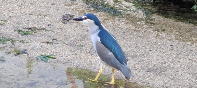 집으로 돌아오는 길에 방학천에서 해오라기를 만났다. 사냥을 하는 중인지 토사가 밀려들어 얕아진 천변에 발을 담그고 수면을 노려보다가 나의 인기척을 느끼곤 몇 걸음 물러섰다. 백로과에 속하는 해오라기는 야행성이라 ‘밤물까마귀’라는 별명도 지녔는데 이 아침에 나온 걸 보면 몹시 허기진 모양이다. 해오라기는 진한 회색의 날개와 흰 배, 머리에서 뒷목 부분은 검다. 흰색의 긴 장식깃이 멋스러운 새다. 해오라기 있는 강이나 하천엔 물고기가 많아 예전에는 물고기를 잡는 사람들이 해오라기의 먹이 사냥하는 모습을 보고 천렵 장소를 고르기도 했다.