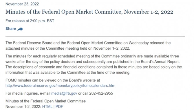 이날 공개된 의사록은 당시 파월 의장의 회견 내용을 뒷받침해 12월 빅스텝(한 번에 0.5%포인트 금리인상)에 무게를 실은 것으로 풀이된다. 의사록에 따르면 다수의 FOMC 위원들은 그동안 집행한 공격적인 통화 긴축정책의 누적된 효과가 경제와 물가에 어떠한 영향을 미치는지 평가하기 위해 금리인상의 속도를 늦출 필요가 있다고 설명했다. 통화정책이 시장에 미치는 효과가 "어느 정도인지, 그 시차가 얼마나 되는지 불확실하다"고 이들은 언급했다.
