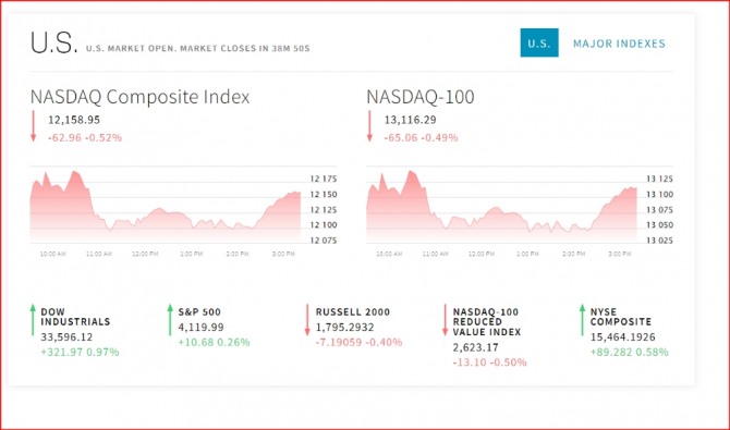 이미지 확대보기4일 뉴욕증시에 따르면 뉴욕증시는 국제유가의 급등 속에 요동치고 있다. 뉴욕증권거래소(NYSE)에서 다우존스30산업평균지수와 스탠더드앤드푸어스(S&P)500지수 그리고 나스닥지수 모두 불안한 모습이다. 특히 나스닥 기술주는 국제유가 상승에 따른 금리인상의 공포로 요동치고 있다. 이날 뉴욕증시는 원유 깜짝 감산 소식에 따른 금융시장 파장을 주시했다. 석유수출국기구(OPEC)와 러시아 등 비(非)OPEC 주요 산유국들의 협의체인 OPEC 플러스(OPEC+)는 주말 간 하루 116만 배럴 규모의 자발적 추가 감산을 일방 선언했다, 갑작스러운 감산 소식에 국제유가는 약 일 년 만에 최대폭으로 급등했다. 골드만삭스는 국제유가가 끝내 배럴당 100달러대로 치솟을 수 있다고 전망했다.
