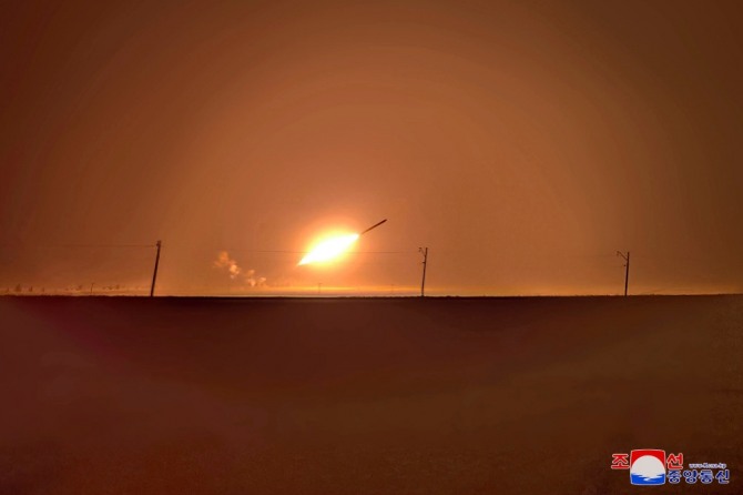 이미지 확대보기북한 조선중앙통신이 3일 제공한 사진에 2일 새벽 북한의 미사일이 서해상으로 발사되고 있다. 북한의 미사일 도발은 지난달 30일 순안 일대에서 동해상으로 단거리탄도미사일(SRBM) 2발을 발사한 지 사흘 만이다.사진=AP/뉴시스