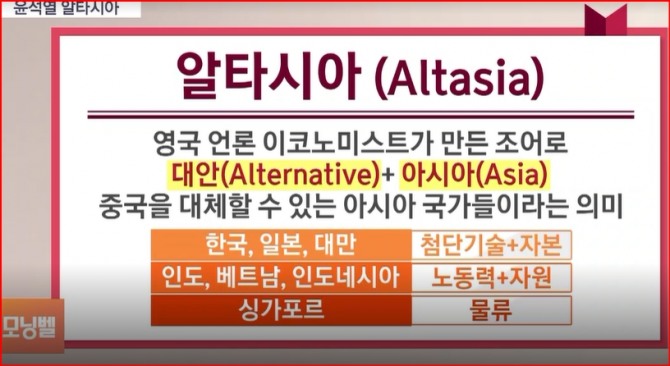 이코노미스트에 따르면, 2022년 9월까지 1년간 알타시아의 미국에 대한 수출 규모는 6340억 달러로 중국의 대미 수출 실적(6140억 달러·약 809조원)을 상회했다. 전문 숙련 노동자의 숫자에서도 알타시아가 중국을 앞섰다. 알타시아에는 고등교육을 받은 25~54세 사이 숙련 노동자가 1억5500만 명 거주하고 있다. 중국의 경우 1억4500만 명 수준이다. 알타시아 지역의 생산가능인구(15~64세)도 14억 명으로 9억5000만 명의 중국을 훌쩍 뛰어넘는다. 미국 주도의 인도태평양경제프레임워크(IPEF)가 알타시아 통합을 위해 역할을 할 수 있다는 분석도 있다. 한국·일본·대만의 기술과 자본, 싱가포르의 금융과 물류, 인도·베트남 등의 노동력과 자원을 결합하면 중국보다 더 큰 시장을 만들 수 있다는 것이다. 과도한 대중국 경제 의존도 낮추기가 국가적 과제인 한국으로서는 주목할 만한 전략이다.
