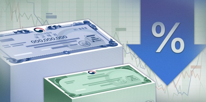 이미지 확대보기3년물과 5년물 국고채 금리는 연 2%대로 하락한 상태다. 연 3.5%인 기준금리와 비교하면 5%포인트 차이다. 0.25%p씩 두 차례 금리를 인하한 효과를 낸 셈이다.