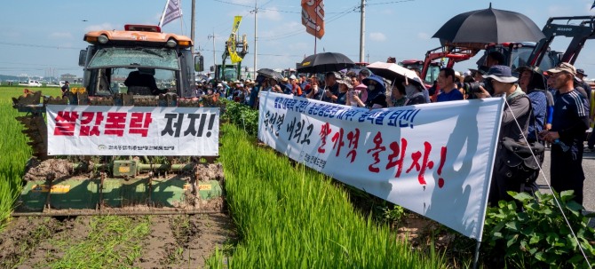 생산 과잉은 쌀값 폭락으로 이어질 수밖에 없다. 지난해 10월 80㎏당 21만7552원이었던 산지 쌀값이 17만7740원까지 떨어지자 논을 갈아엎는 농민이 등장했을 정도다.