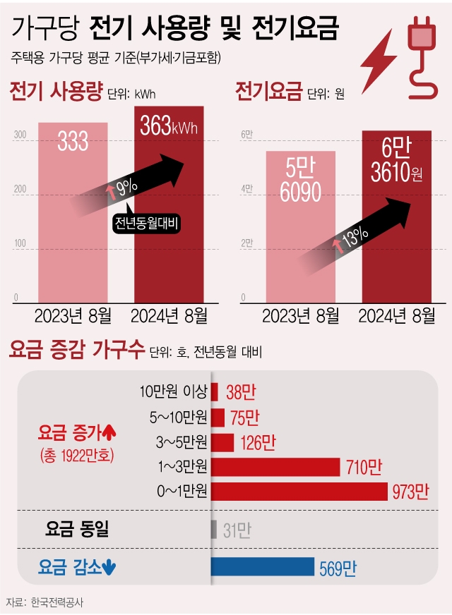 이미지 확대보기평균 최대 전력수요도 역대 최고치다. 가구당 평균 6만3610원의 전기요금 청구서가 책정된 배경이다. 1년 전보다 7520원이나 늘어난 액수다. 누적적자 40조원에 현재 부채만 200조원 이상인 한전의 경영은 개선 기미도 없다.