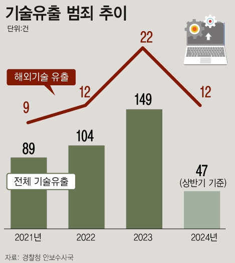 검찰이 처리한 기술유출범죄도 2021년 이후 지속적인 증가세다. 중소벤처기업부에서 기술 보호 범위를 대폭 늘리고 처벌과 보상을 강화하는 내용의 대책을 내놓고 있지만 실효성을 의심하지 않을 수 없다.