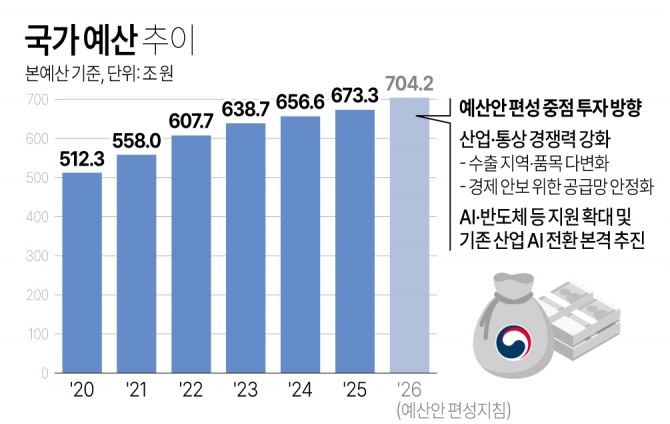 이미지 확대보기재정 투자를 통한 경기 회복과 산업 경쟁력을 높이기 위해서다. 인공지능(AI)·첨단 바이오 등 미래 먹거리 분야에 투자를 늘려 글로벌 기술 패권 경쟁에 대응하기 위한 포석이다.