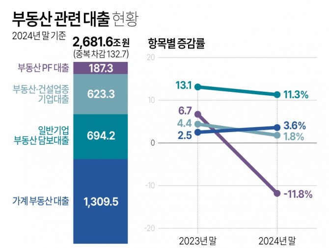 특히 국내 부동산 PF 관련 보증 규모는 2조9000억원에 이른다. 1년 사이 40%나 늘어난 규모다. 부동산 금융투자 상품 규모는 375조9000억원이다. 증가율은 2023년 11%에서 지난해 3.7%로 뚝 떨어졌다.