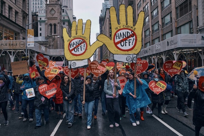 트럼프의 일방적인 국정 운영에 진보 진영은 전국적인 시위로 맞서고 있다. 시위에는 연방정부 조직 축소로 감원당한 공무원과 보건기구 종사자들까지 가세하는 모양새다.